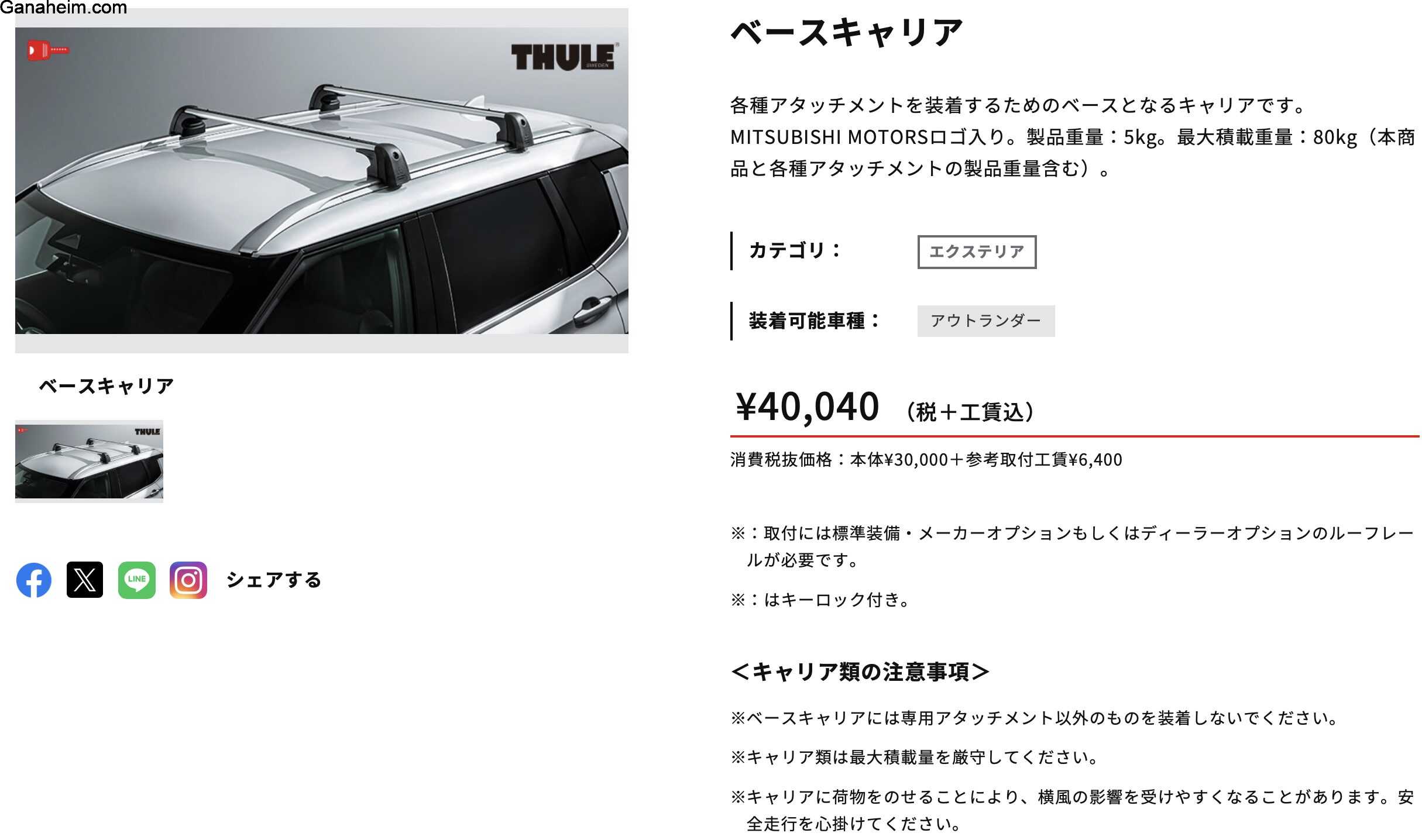 三菱公式アクセサリーのベースキャリアを見てみます。