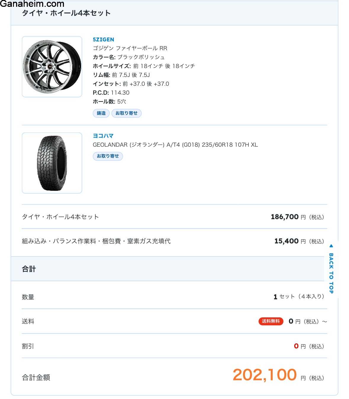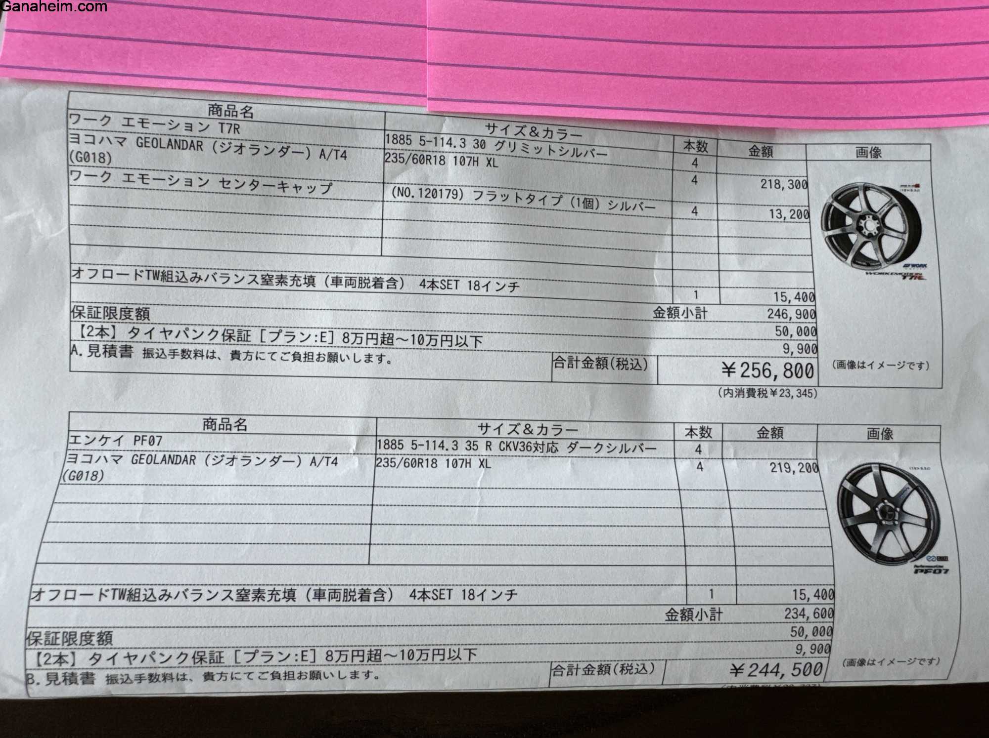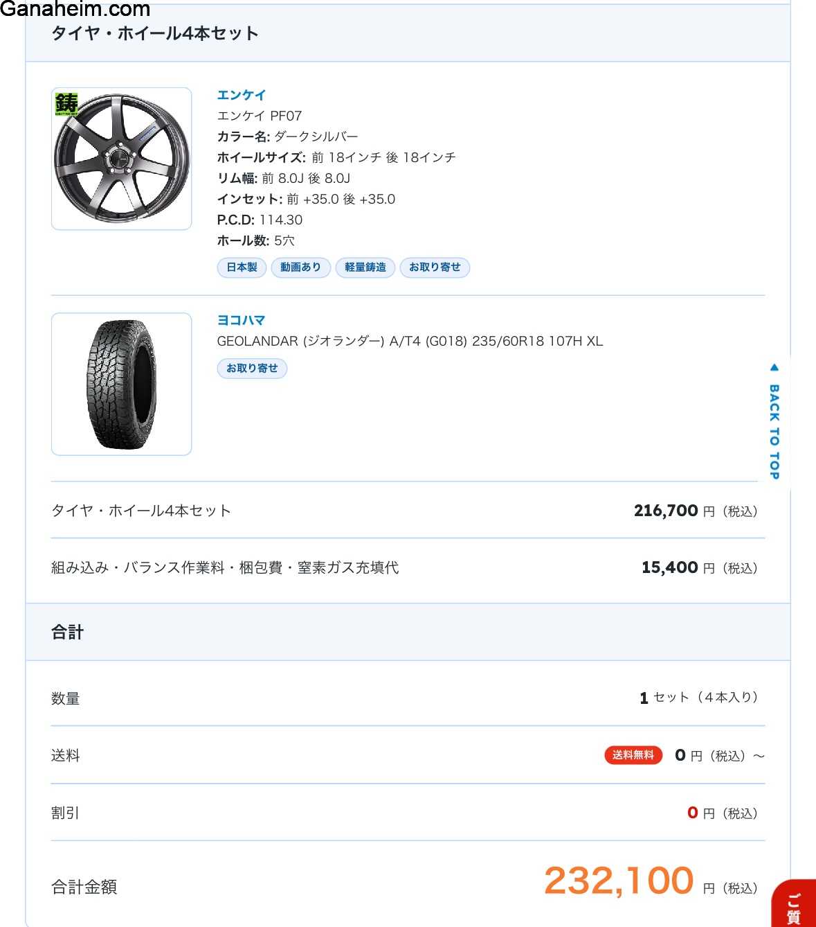 接地面積増やすか、扁平増やすか悩むところですが今回は235/60で行きたいと思います。