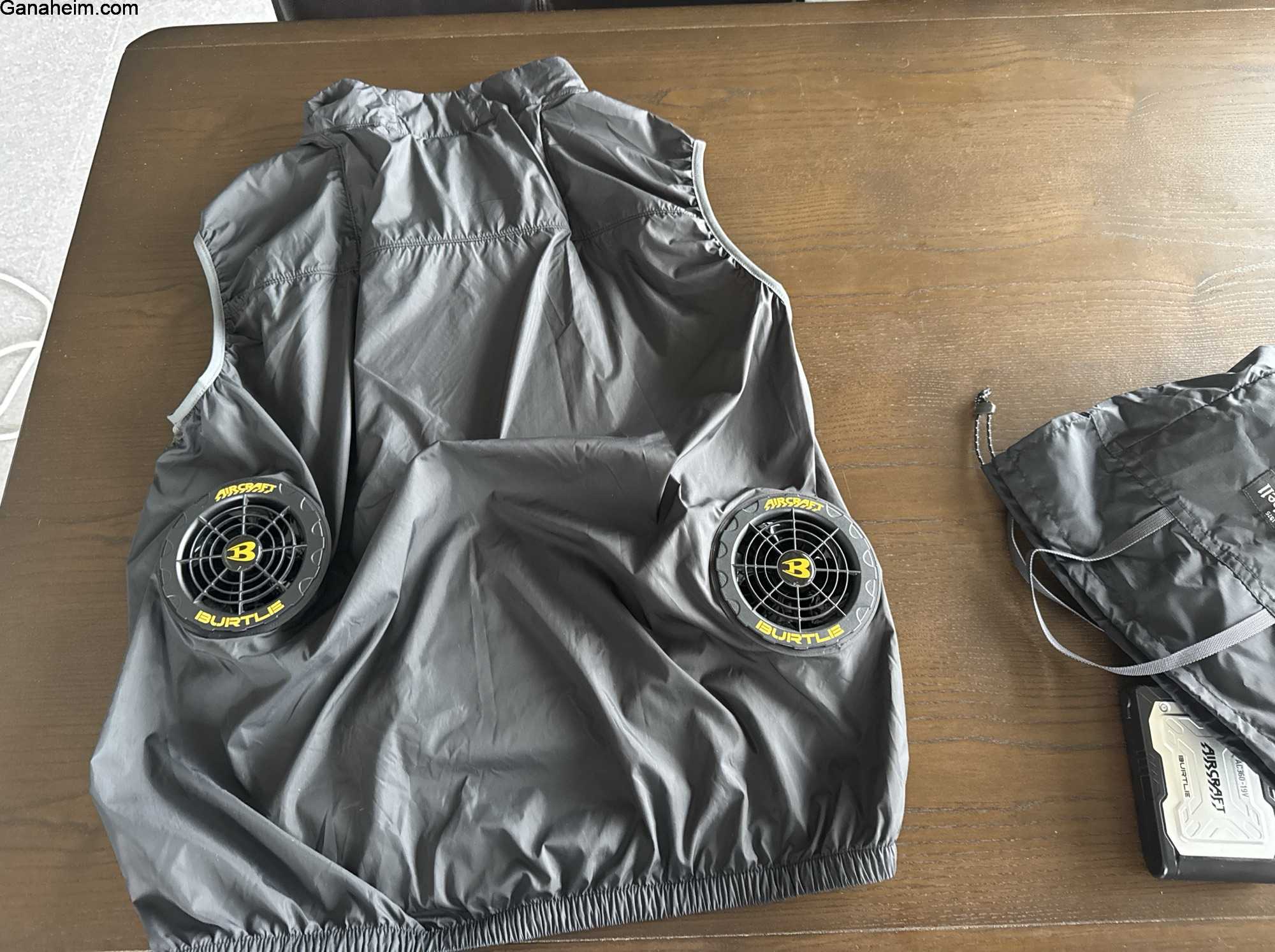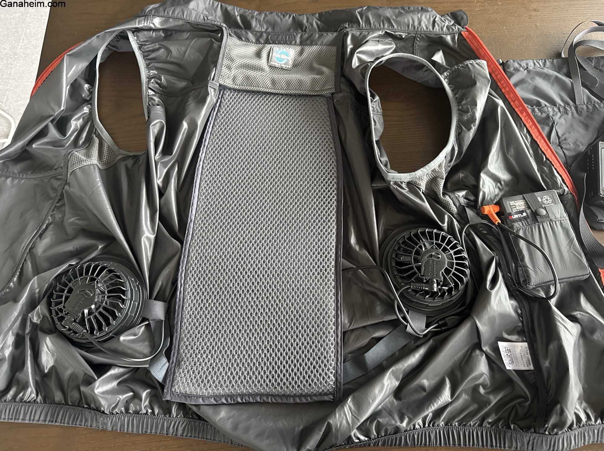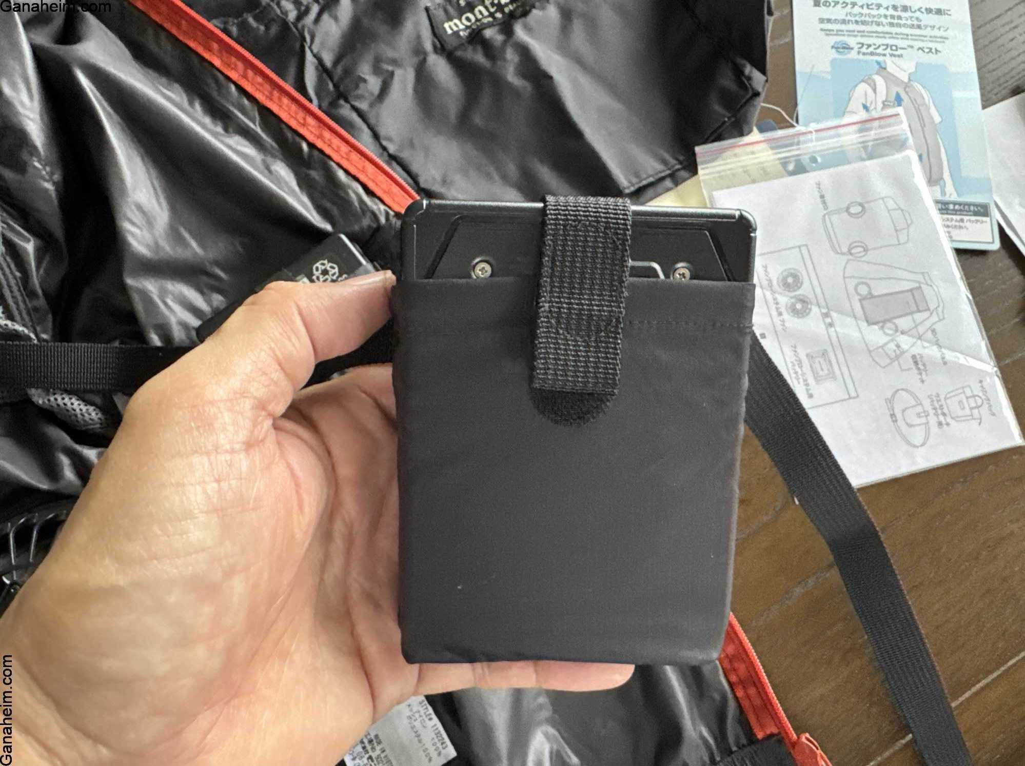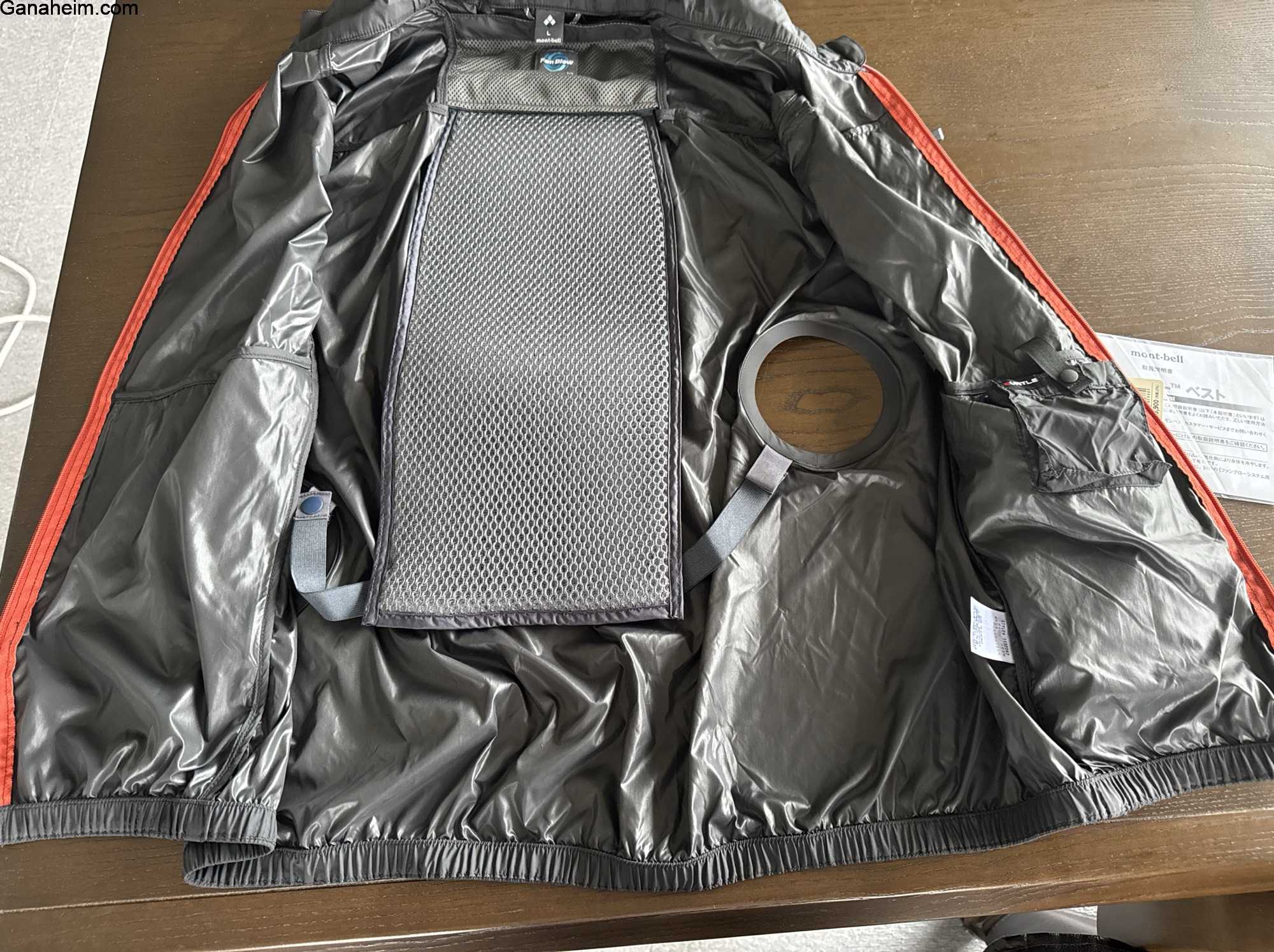 俗にいう空調服?ってヤツですが、モンベルバージョンはリュックを背負った状態でも背中に風が流れるよう工夫されてます。