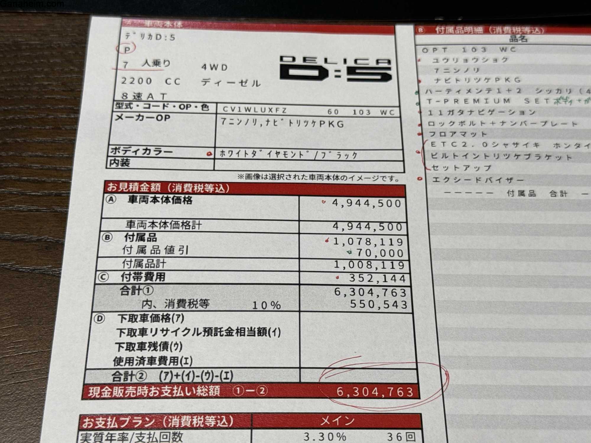 ここに追加するとしたらツートンの有料色77000円アップぐらいかな?乗り出し価格は605万程度か。