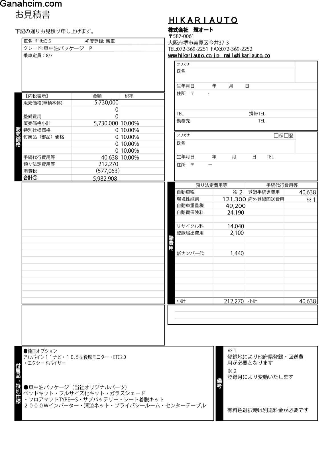 輝オート様HPを見ると2026/1/27に新型D5の車中泊パッケージというカスタムモデルが更新されていて、web見積りがメールで届くサービスがあり利用させてもらいました。